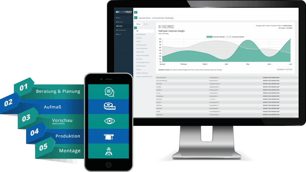 Über unsere eigenst entwickelte Software-Lösung, wird die Auftragsabwicklung für alle Beteiligten einfach und übersichtlich. Einmal über unser Onlineportal und über unsere Kunden-App.